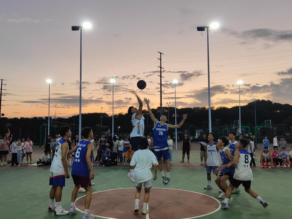 气排球场上充满紧张氛围,球员们展现出高超的技艺,他们扣球精彩,传球精准,掌声和呐喊声此起彼伏,引发观众的热烈欢呼;在篮球赛上,球员们奔跑如飞,争球激烈,展现出快速的过人技巧和高难度的扣篮动作,每个进球都引起观众的欢呼雀跃,现场气氛热烈而火爆,整个运动场充满了激情与活力。