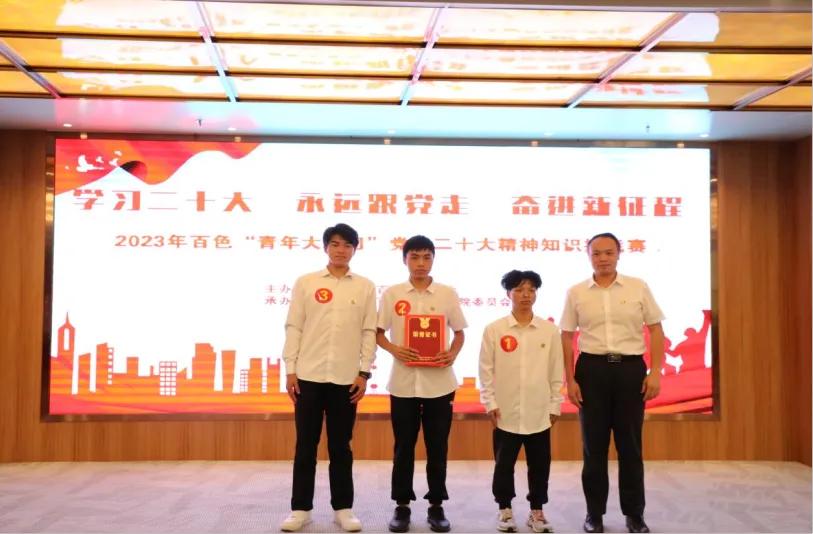 为深入贯彻落实习近平新时代中国特色社会主义思想,全面学习贯彻党的二十大精神,更好团结引领广大红城青少年积极投身新时代壮美广西百色建设,为奋力谱写中国式现代化广西百色篇章贡献青春力量,9月1日,由共青团百色市委员会主办,共青团百色市人民医院委员会承办的“学习二十大、永远跟党走、奋进新征程”——2023年百色“青年大学习”党的二十大精神知识挑战赛在百色市人民医院门诊大楼9楼会议室成功举办。