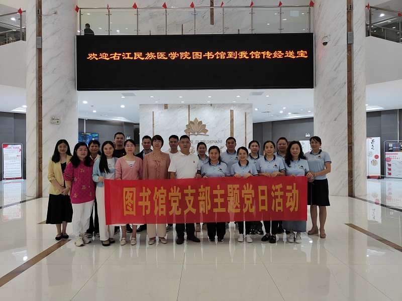 为深入学习贯彻党的二十大精神,进一步推动党建引领工作,促进新时代图书馆党建和业务发展“双融双促”,落实学校党委开展“践行‘四下基层’优良传统 服务师生推动高质量发展”主题党日活动要求,11月8日,开云官网图书馆党支部赴百色市图书馆与百色市图书馆党支部联合开展主题党日活动。本次活动旨在促进双方党建工作的了解和沟通,互学互鉴,共同推进党建与业务工作高质量发展。