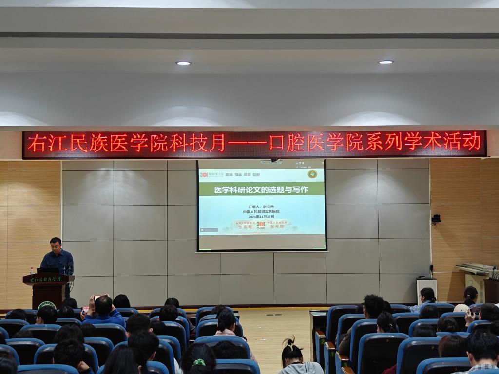 为营造浓厚的学术氛围,提高科研论文的撰写质量,11月27日晚,口腔医学院邀请中国人民解放军总医院赵立升博士在5栋101学术报告厅开展专题学术讲座,并在百东校区设置了线上分会场。讲座由口腔医学院副院长马卓飞主持,口腔医学院全体教师、研究生及本科生参加。