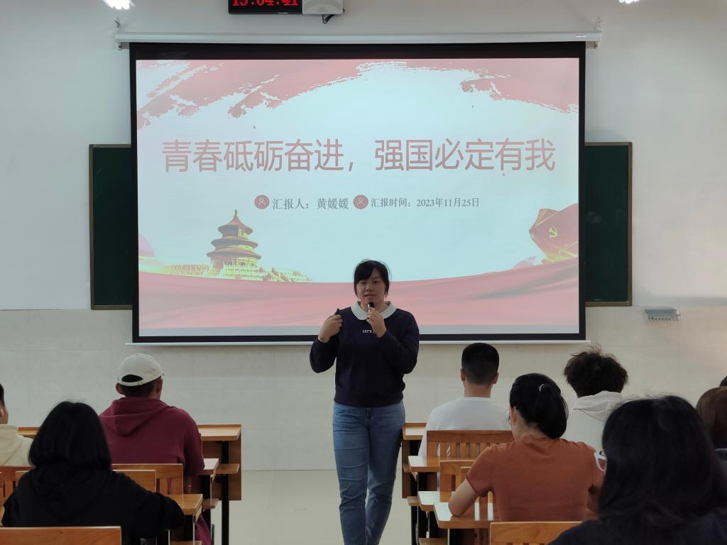 下午,药学院学生科黄媛媛老师进行了“青春砥砺奋进,强国必定有我”的专题培训。她通过理论结合视频教学的方式,指出当前青年人存在的问题,并勉励全体学员不应向外索取,而应向内思考,成为有目标、懂感恩、有担当、有勇气、有技能、有品德的青年人。