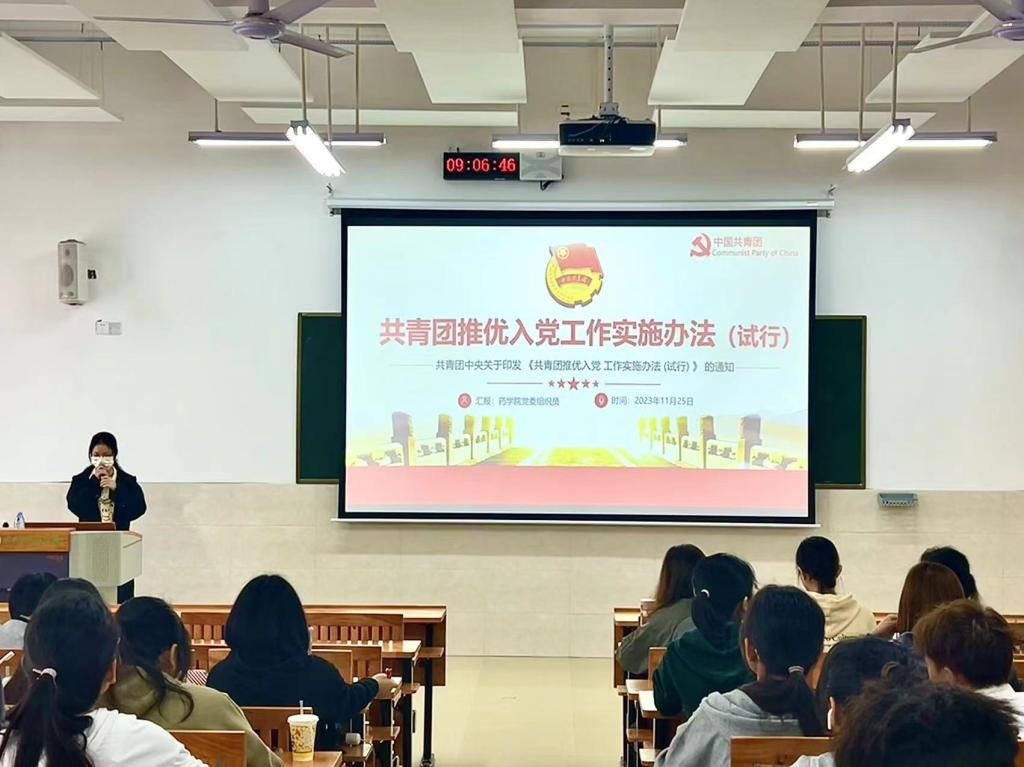 25日上午,培训班第一课由药学院学生科姚巧云老师向学员们介绍共青团推优入党工作及党员发展流程,希望大家通过了解推优入党的具体内容,积极要求自己成为政治思想、道德品行、执行纪律和发挥作用上的先进个人,努力向党员标准看齐。