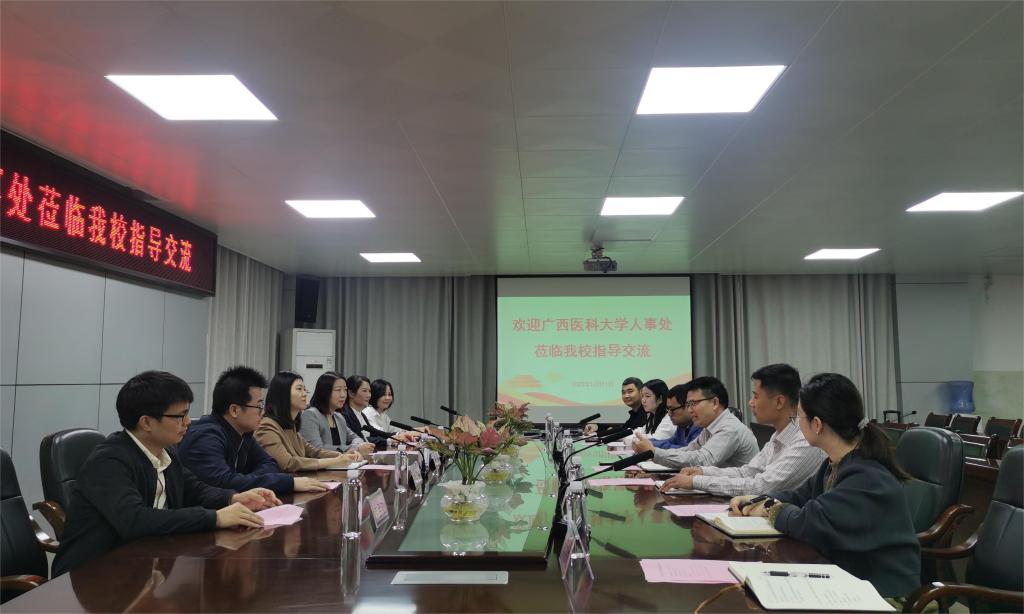 12月11日上午,广西医科大学人事处徐榕副处长一行6人到访开云官网,就人事工作进行调研。开云官网人事处相关业务科室负责人参与调研座谈会。