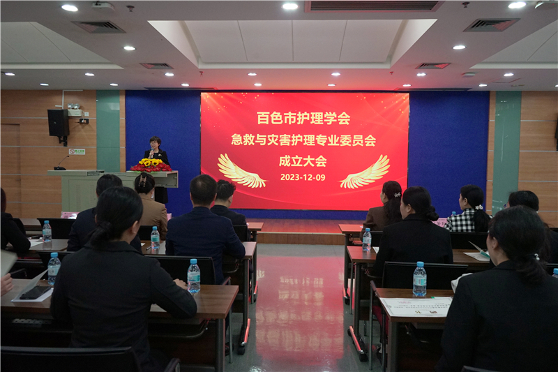 百色市护理学会理事长黄芳艳在致辞中代表百色市护理学会向百色市第一届理事会急救与灾害护理专业委员会的成立表示热烈祝贺,并对委员会的建设发展提出三点建议:一是制定专委会发展规划,“护航”可持续发展,制定专委会工作计划和可持续发展规划,扎实开展工作,切实取得成效;二是充分发挥专委会专业优势,引领专科发展,紧扣发展前沿,以患者需求为导向,加强急救与灾害护理专业内涵建设,推动急救与灾害护理向更科学化、制度化和规范化发展;三是要深入基层,帮助基层医院提升水平,加强与各医疗单位的密切联系和交流,创新对基层医疗机构的帮扶策略和模式,不断提高基层医护人员的急诊急救的管理意识与灾害的应对和处置能力,切实解决基层医院存在的困难和问题。