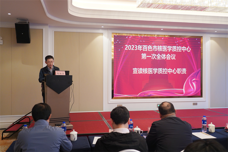 百色市核医学质量控制中心主任、我院核医学科副主任郑红宾博士宣读百色市核医学质量控制中心职责