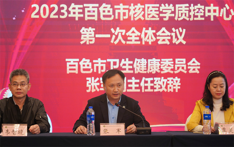 会上,百色市卫生健康委员会副主任、市中医药管理局局长张军在致辞中指出,百色市核医学质量控制中心的成立,旨在促进百色市核医学学科的健康规范发展,加强核医学诊疗技术管理,规范核医学诊疗行为,保证医疗质量和医疗安全对一些特殊项目的开展、相关新技术的引进等进行综合评价,为市卫生行政部门施行有效决策提供合理可行的依据。张军副主任希望百色市核医学质控中心全体工作人员不负重托,切实承担起质控中心的责任,推进全市核医学诊疗规范化、标准化、同质化发展,为百姓提供更加安全、有效医疗服务。