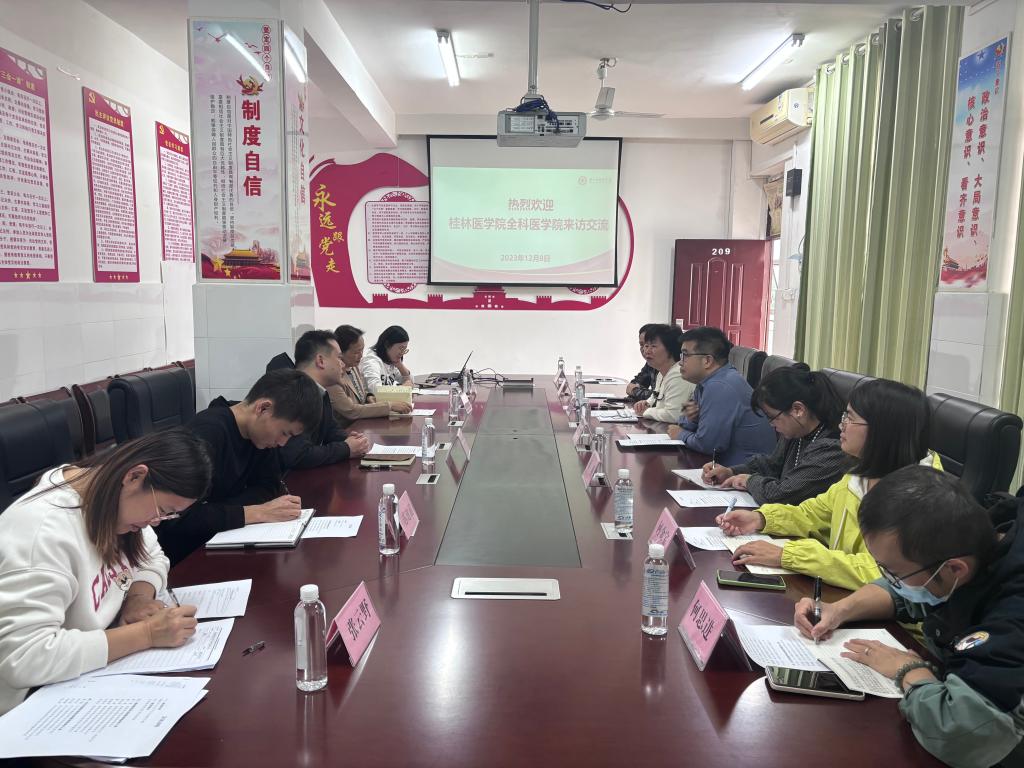 12月8日,桂林医学院全科医学院院长郑楚、党委副书记潘涛等一行7人到全科医学院考察交流。全科医学院党委书记莫小强、院长李凤玲、副书记廖赞勇及各科室负责人参加了交流座谈会。