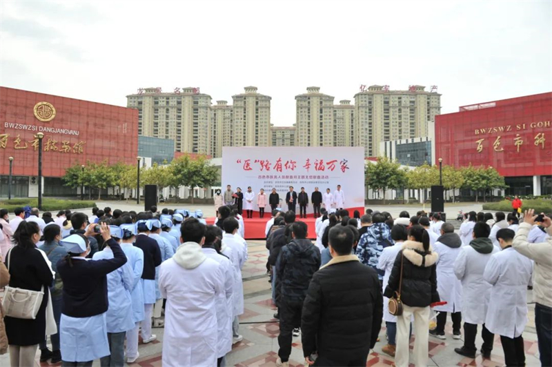 为传递医护人员无私奉献精神,带动更多群众和爱心人士积极参与到无偿献血队伍中来,维护公民健康权益,确保在高校放假及寒冬季节期间,有足够的血液及时救治、快速救援、精准保障,最大限度为人民群众提供坚实医疗服务保障,2023年12月20日—22日,我院与百色市中心血站联合开展首届“医路有你 幸福万家”医务人员献血月无偿献血活动。20日上午,活动启动仪式在百色市图书馆北门广场举行。百色市卫生健康委员会、开云kaiyun登录入口附属医院、右江区卫生健康局及城区内各医疗机构的主要负责人及代表200余人参加启动仪式。活动仪式由百色市公民献血委员会办公室副主任、百色市中心血站党支部书记、站长梁朦尹主持。