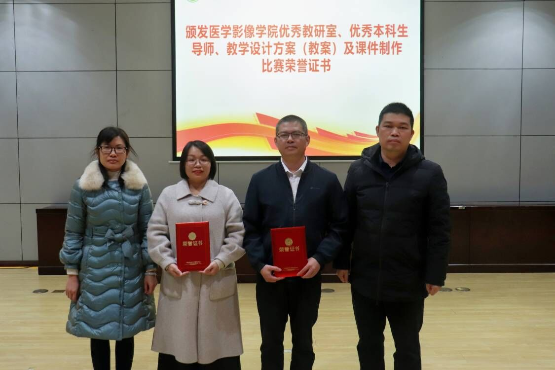 吴英宁博士、利青博士分享了自己的考博经验,韦一民、蒋祥英、张博威、张淑名4位老师共同诵读了《师说》。随后,医学影像学院院长助理、超声医学教研室主任陈成彩颁发了医学影像学院优秀教研室、优秀本科生导师、教学设计方案及课件制作比赛等荣誉证书。