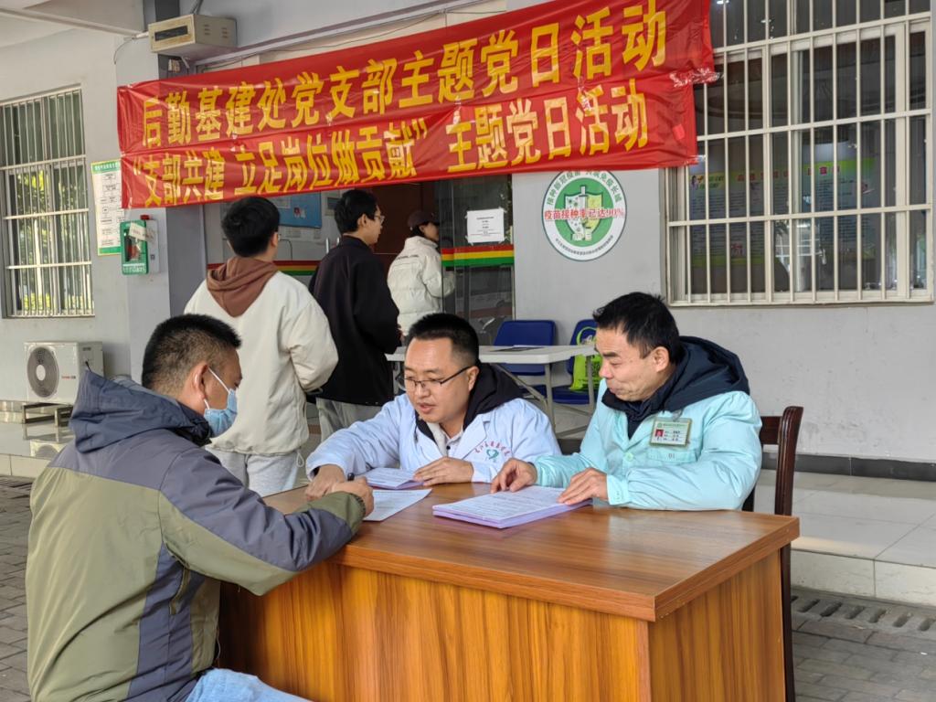 当前已进入流感高发季节,为预防校园流病情暴发,维护校园正常学习生活秩序,12月26日,后勤基建处党支部开展“支部共建 立足岗位做贡献”主题党日活动,邀请右江区城北社区卫生服务中心医务人员为开云官网师生进行流感疫苗接种服务。