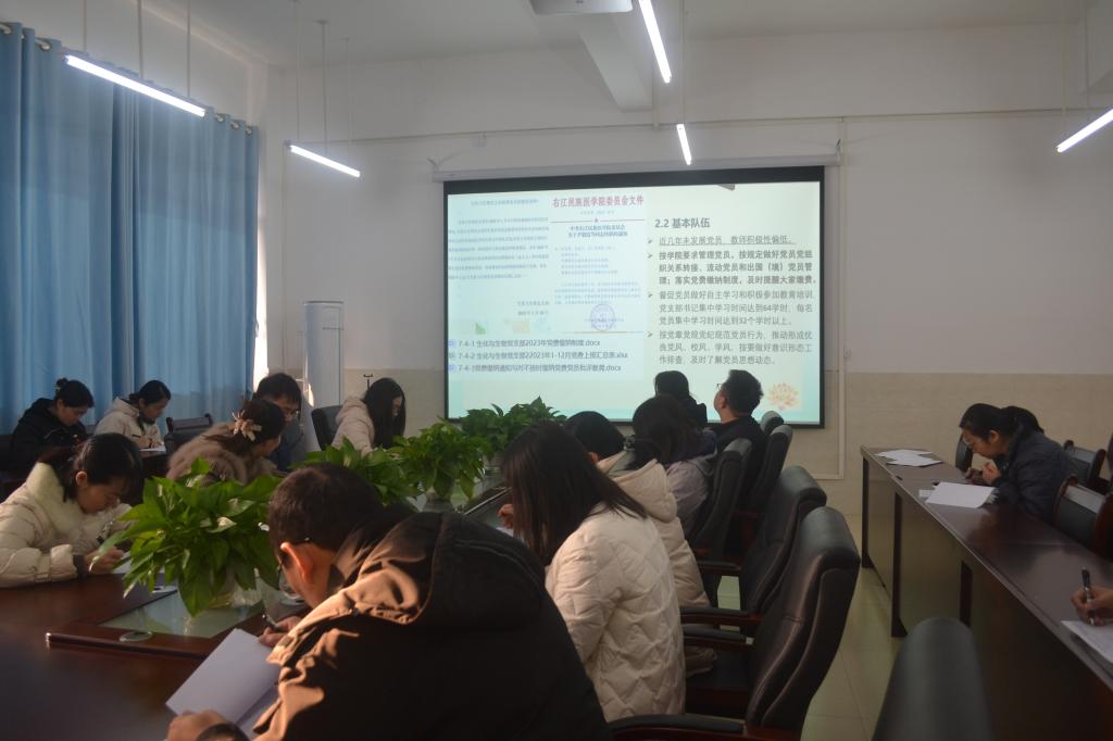 2023年12月27日上午,基础医学院党委在学院二楼会议室召开2023年度党支部述职考评大会。基础医学院“两委”委员、各党支部委员及师生代表参加会议,会议由学院党委书记宾晓芸主持。