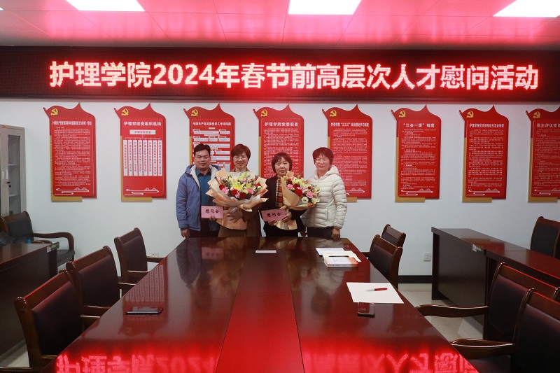 为进一步做好联系服务高层次人才工作,2024年1月12日下午,护理学院党委在党员活动室开展2024年春节前高层次人才慰问活动,护理学院党委副书记黄上峰(主持党委全面工作)、党委副书记、院长张莉芳慰问了护理学院高层次人才代表护理学院副院长麻新灵博士和人文综合护理教研室主任刘西芳博士。