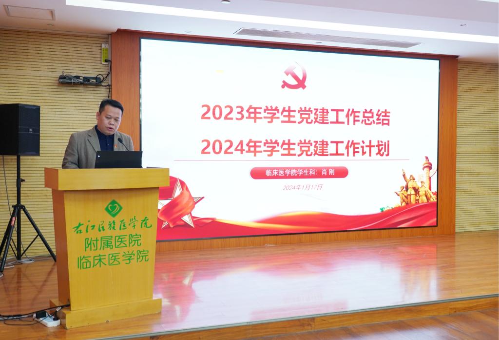 我院学生科肖刚科长作《2023年学生党建工作总结暨2024年工作计划》专题报告