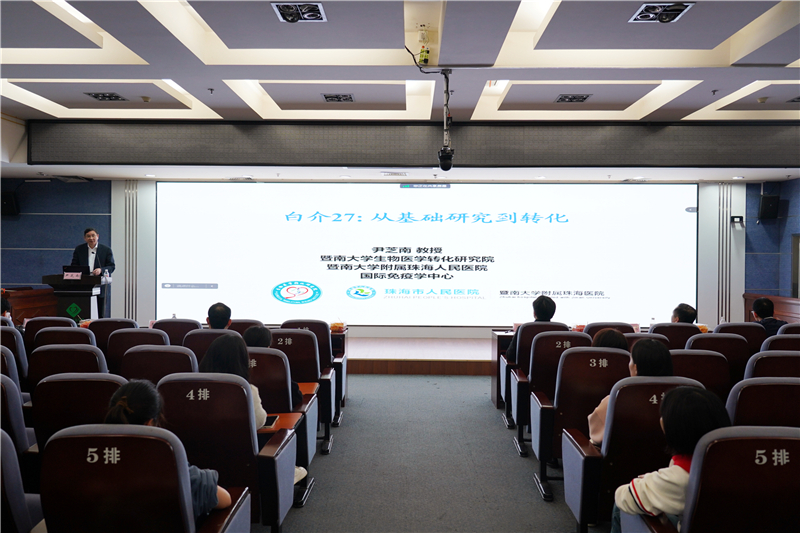18日下午,暨南大学生物医学转化研究院院长、珠海人民医院学术总监尹芝南教授首先在右医附院总院区外科五楼多功能厅举行学术报告讲座和科研经验交流会。他以《IL27及其转化》为题详细分享了该科研项目的研究背景、立项依据、关键科学问题、主要研究内容、研究团队及工作基础、预期成果及创新点、预算编制情况等,指导听众如何进行科研并将其转化为实际成果。报告结束后,与会者积极提问并与尹芝南教授进行深入交流。