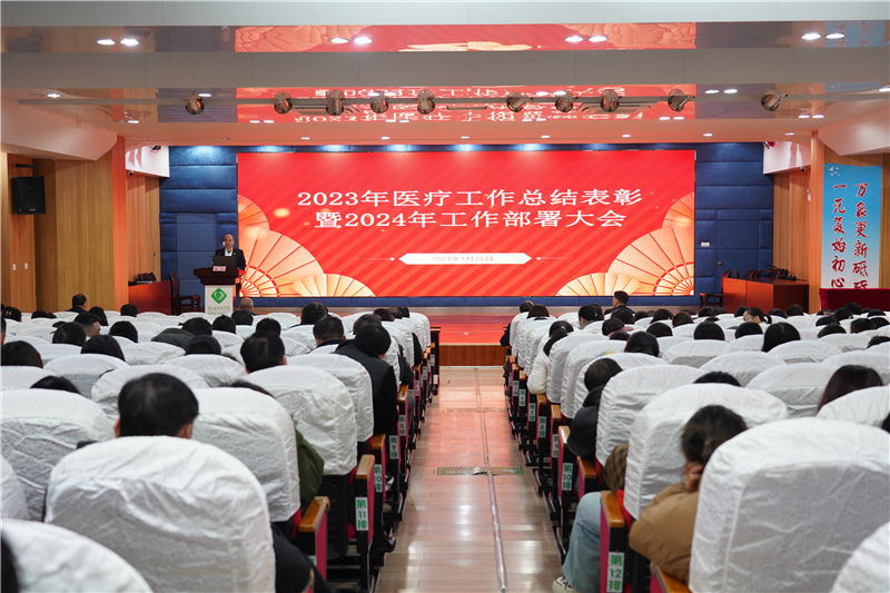 林栩书记全面总结了医院2023年取得的新成绩,并对2024年医疗工作提出具体要求。林栩书记要求全院职工一要加强党建建设,提高政治站位,强化大局意识,在医院党委的引领下全面促进医院的规范化管理,以三级公立医院考核为抓手,全面推动医院高质量发展,使医院各项业绩再上新台阶;二要凝心聚力,埋头苦干,以“三甲复审”为契机,加强公立医院绩效考核管理,在“一院两区”的新发展中寻找出路,推动医院高质量发展;三要加强医疗质量管理,保证医疗服务高质量发展,职能部门要优化质量管理体系,各科室要增强责任意识,狠抓落实医疗核心制度,规范诊疗行为和优化医疗服务流程,进一步提高医院的医疗服务水平;四要加强交流合作,推动学科的建设,坚持学科兴院、人才强院战略,高度重视学科建设和发展,高度重视人才培养,加快学科新技术的引进与应用,不断攀登医疗技术新高度,形成一支具有较强影响力的领军团队,提高医院核心竞争力,在推进医院高质量发展的新征程中共述凌云之志。