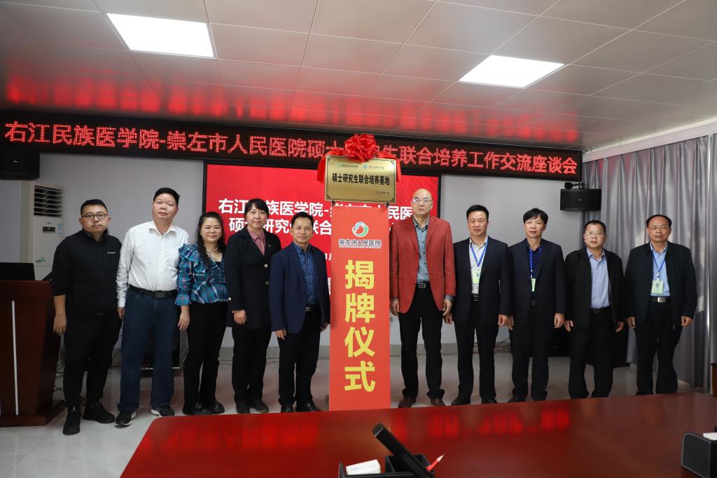 会上,研究生学院院长曾怡介绍了开云官网研究生教育发展现状,崇左市人民医院党委书记李晔介绍了医院的基本情况,双方共同为“硕士研究生联合培养基地”揭牌。