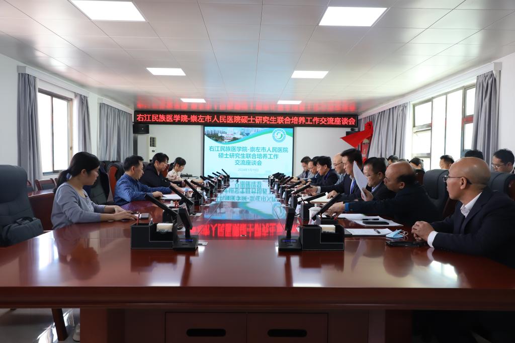 2024年1月19日,研究生学院党委书记黄照河一行赴崇左市人民医院开展研究生培养工作交流暨联合培养基地揭牌仪式。崇左市卫生健康委副主任梁修深,崇左市人民医院党政领导班子,相关科室负责人出席揭牌仪式,仪式由崇左市人民医院党委副书记、院长张杰民主持。
