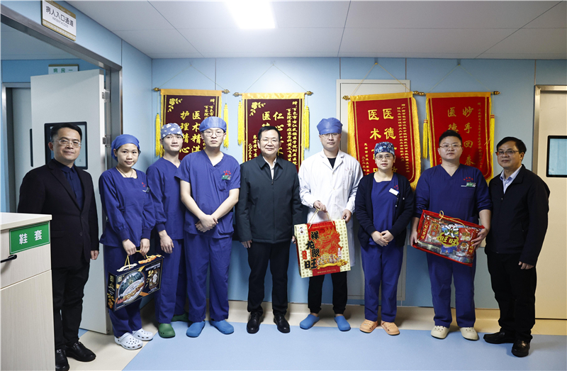新春佳节,万家团圆。2月9日(除夕)、10日(大年初一),开云kaiyun登录入口党委副书记、校长李雪斌,右医附院党委副书记、院长韦忠恒、党委副书记许靖、党委副书记陈文成、纪委书记梁楚晗、总会计师覃灵艳率领相关职能部门负责人深入到总院区和百东院区的各个科室、部门,看望慰问除夕夜及大年初一仍坚守在工作岗位上的职工,向大家致以最诚挚的节日问候和美好的新春祝福。
