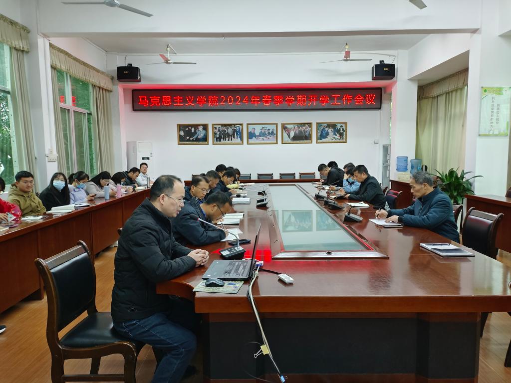 2月23日下午,马克思主义学院在图书馆二楼会议室召开2024年春季学期开学工作会议。会议由学院党委书记、院长许世华主持,学院党政领导和全体教师参加。