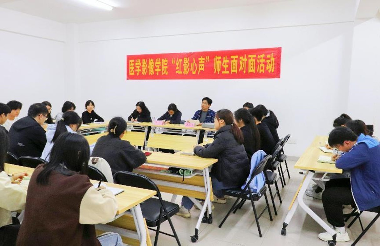 为了解低年级学生学习情况,探讨学风建设行之有效的办法,3月7日下午,医学影像学院在百东校区10栋宿舍楼101活动室开展第七期“红影心声”师生面对面座谈会。医学影像学院党委书记李丹、副书记银联飞、辅导员赖倩、黄国府,2022级与2023级各班学习委员、学生会学习部以及百东校区主席团成员参加此次会议,本次座谈会由赖倩主持。