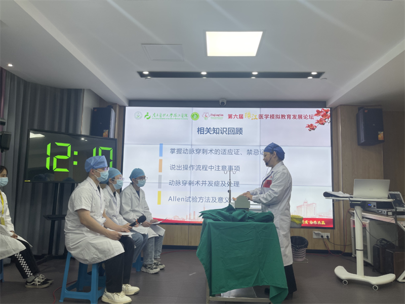 临床基础技能模拟教学大赛是今年首次举行。决赛限定教师在15分钟内,对住培一年级学员进行临床技能授课,授课内容涵盖教学主题、教学目标、临床技能操作以及思政融合。我院郭俊宇副教授在此次决赛中抽到护理模块——动脉穿刺术,她凭借扎实的临床技能和出色的教学能力,通过生动的模拟教学,使学生对动脉穿刺术基本操作有了更直观的认识,提高了学生的实际操作能力,并得到评委专家认可。