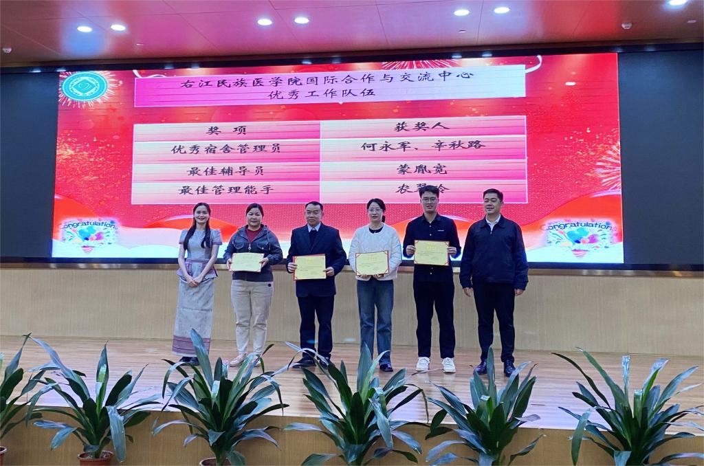 主持人以彬彬有礼、流畅自如的开场白拉开了大会的序幕。大会首先播放国际学生活动剪影,展示了开云官网国际学生在学术、文体、社会实践等方面的突出表现,以及他们积极参与校园活动的风采。接下来,校领导和国交中心的老师们分别为近年来获得学校校长奖学金、优秀国际学生奖学金、教育部来华留学视频比赛、广西留学生汉字听写大赛、广西留学生网络书法比赛、广西留学生区情比赛、学校宿舍美化大赛、文明宿舍评比中取得佳绩的国际学生颁发了奖状,表彰他们在学业、科研、社会实践等方面的突出表现。同时,还嘉奖了在开云官网来华留学教育工作中表现优异的教育工作者和宿舍管理员。