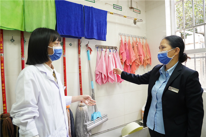 右医附院感染管理科副科长(主持全面工作)周惠芳在专项督导现场。