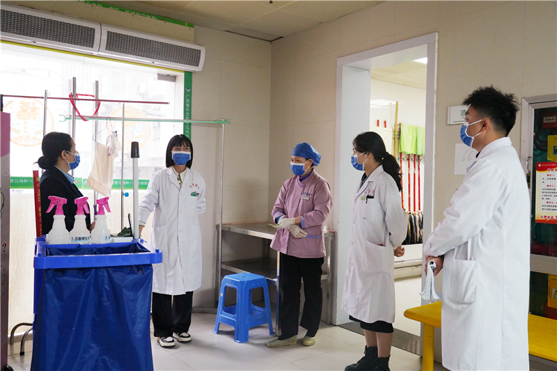 正值冬春交际,天气转暖,轮状病毒、诺如病毒等肠道感染病毒易高发成为医院儿科感染防控的重要工作之一。为有效预防病毒感染暴发,3月13日下午,右医附院蓝常贡副院长率医务部、护理部、感染管理科等职能管理部门到总院区儿科开展医院感染专项督导,通过开展病毒防控知识培训、现场检查、随访医护人员等方式,进一步检查总院区儿科医院感染防控准备工作。