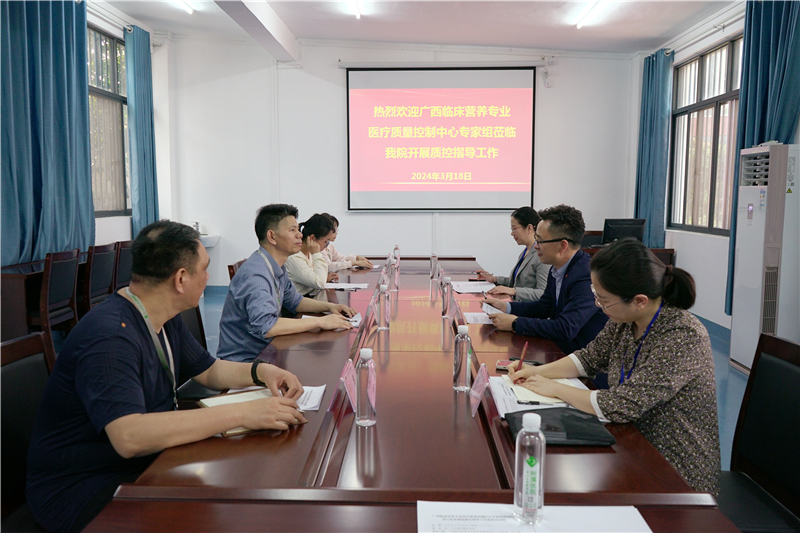 3月18日下午,广西临床营养专业医疗质量控制中心专家组一行3人到右医附院营养科开展营养现场质控指导工作,右医附院蓝常贡副院长、百色市卫健委专家、营养科医技人员及相关科室负责人陪同检查。