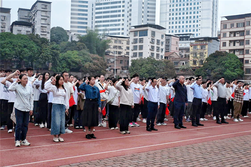 最后,全体师生面向国旗集体重温医学生誓词。“健康所系,性命相托.........”,铮铮誓言回响耳畔,大家紧握右拳,肃立于五星红旗前,庄严肃穆、坚定赤诚,纷纷表示要立志维护医术的圣洁与荣誉,为祖国医药卫生事业的发展和人类身心健康奋斗终生!