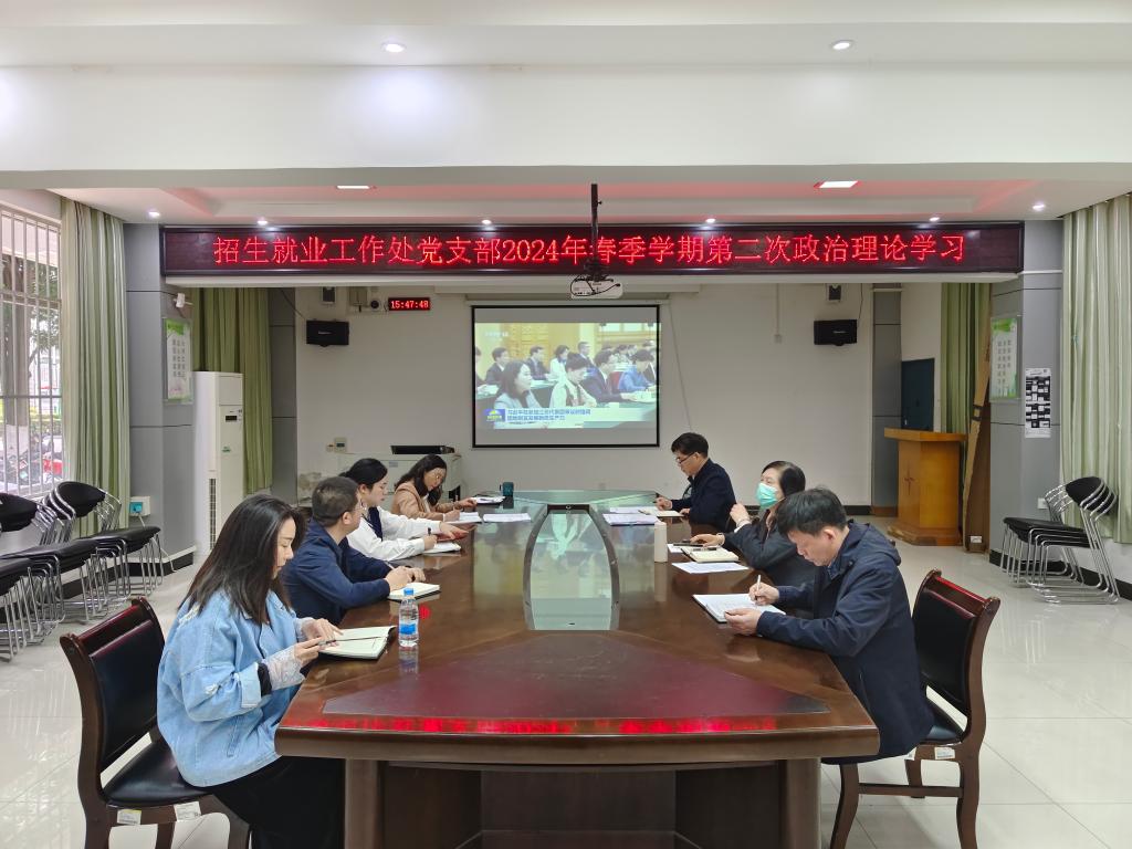 为深入学习贯彻全国两会精神,持续深入学习贯彻习近平新时代中国特色社会主义思想,全面落实党的二十大精神。2024年3月20日下午,招生就业工作处党支部开展“三三三”政治理论学习会,会议由支部书记陆小曲主持,支部全体党员参加。