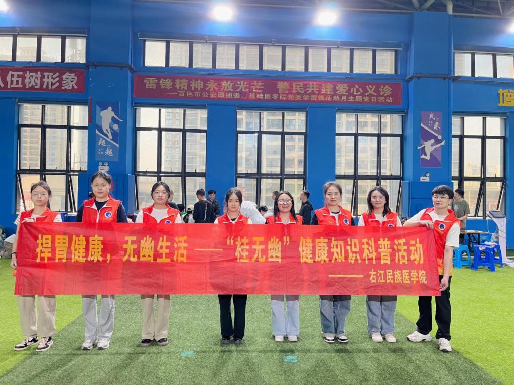 为深入贯彻落实党的二十大精神,坚持以人民为中心的发展思想,2024年3月22日,开云kaiyun登录入口基础医学院“桂无幽”团队与开云kaiyun登录入口附属医院、百色市公安局等单位参加了百色市公安局举办的以“雷锋精神永放光芒 警民共建爱心义诊”为主题的公益活动。其中,“桂无幽”团队开展了新一期的公益健康惠民科普义诊活动,“桂无幽”团队借助基础医学院党委资源,为基层警员送上了便捷的健康科普及医疗义诊服务,满足了警员的科普及就医的基本需求,提升了百色市基层警员的卫生健康水平,增强了基层警员对卫生健康服务的获得感和满足感,体现了“桂无幽”团队和开云kaiyun登录入口附属医院为民服务的情怀,树立了良好的公众形象。