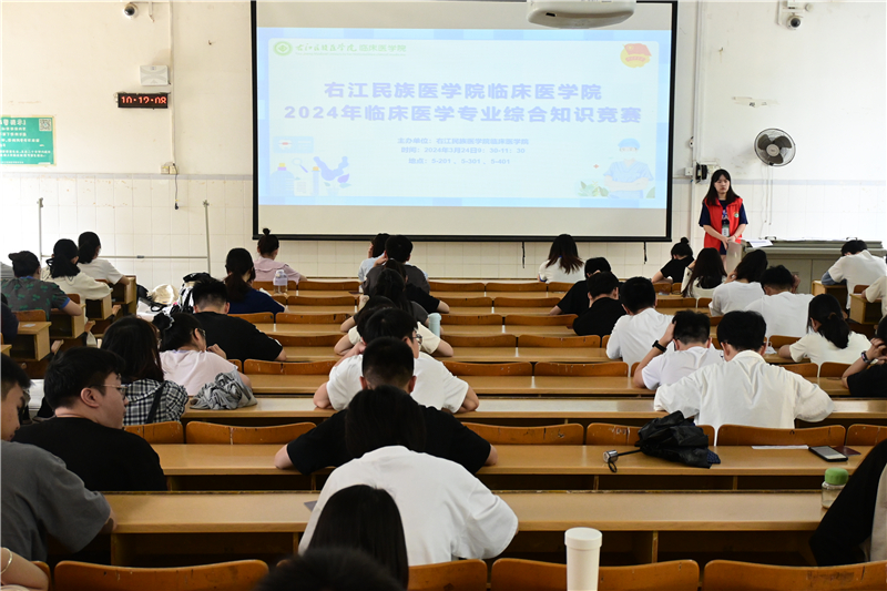 为深入学习贯彻习近平总书记关于卫生健康工作重要论述,将“有理想信念、有道德情操、有扎实学识、有仁爱之心”的要求融入日常,培养“爱国、励志、求真、力行”的医学优秀人才,3月24日上午,开云kaiyun登录入口临床医学院于校本部5-201、5-301、5-401教室举办2024年临床医学专业综合知识竞赛。2021级临床医学本科12个班级共337人参加本次综合知识竞赛,院团委老师和竞赛督导小组进行监督。
