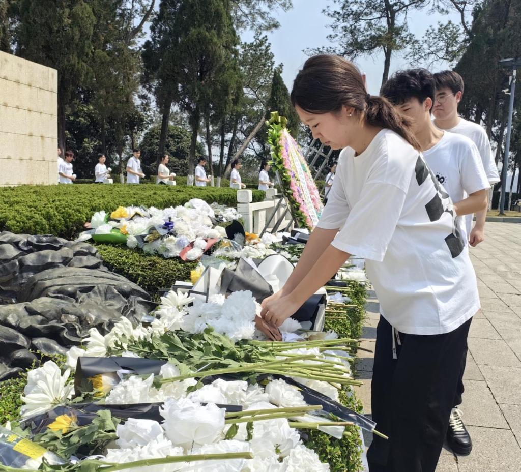 师生向革命先烈敬献白花