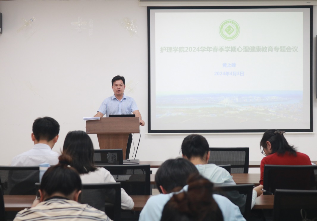 4月3日下午,护理学院在二楼多媒体教室召开2024学年春季学期心理健康教育专题会议。会议由护理学院党委副书记黄上峰主持,护理学院全体教职员工参加会议。