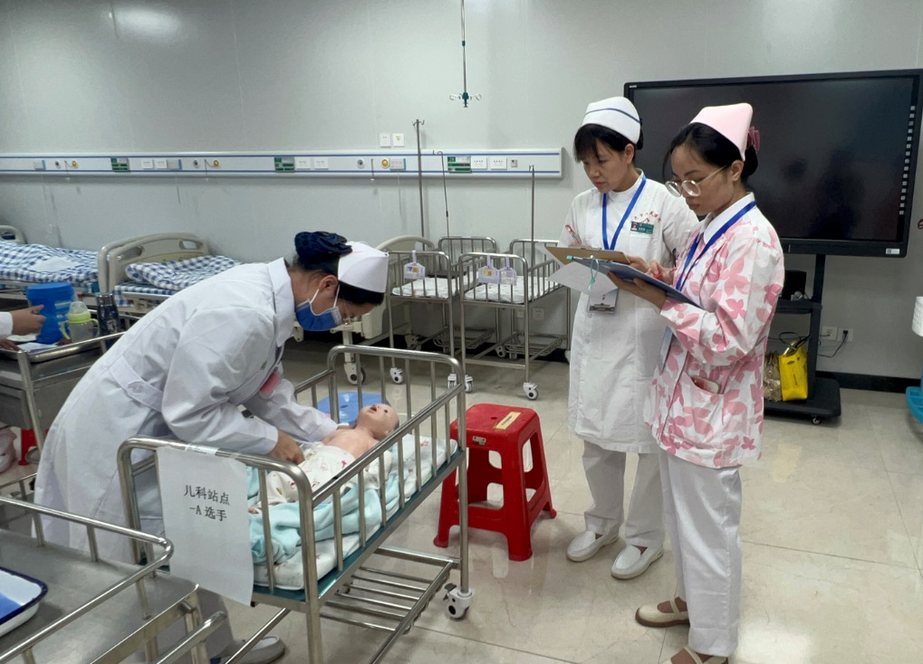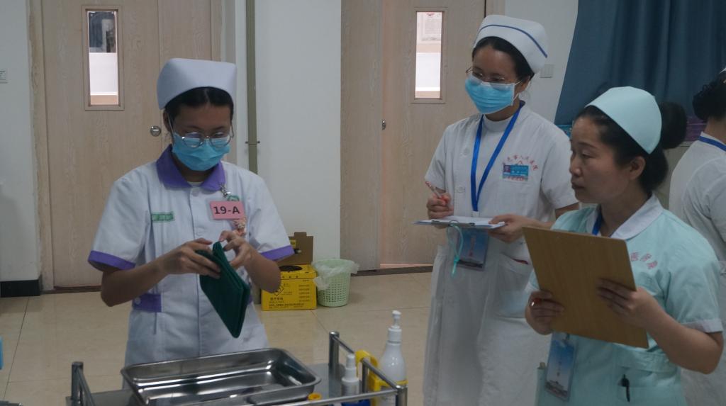 经过初赛选拔,共有本科组16个队,专科组6个队进入决赛。决赛采用“站点式”进行,本科组设有“内科护理、外科护理、儿科护理、妇产科护理”4个站点。专科组设有“内科护理、外科护理”2个站点。每个站点比赛时间为8分钟,时间到即停止操作。比赛过程中,选手们井然有序、沉着冷静,展示出他们娴熟的专业技能和态度。