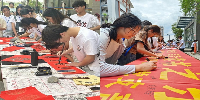 “笔落兴亡定三端之妙,墨写清白尽六艺之奥。”随后,同学们进行撰写斗方展“书”字。第一用笔,第二识势,第三裹束,三者兼备,然后为书,一幅幅斗方在同学们的笔下相继呈现出风采。着眼不看其他,此世墨诣潇洒,“书法大道”拉近了人与书本的距离。前来参与活动的师生也纷纷挑选自己喜欢的诗词书法作品带走珍藏留念。