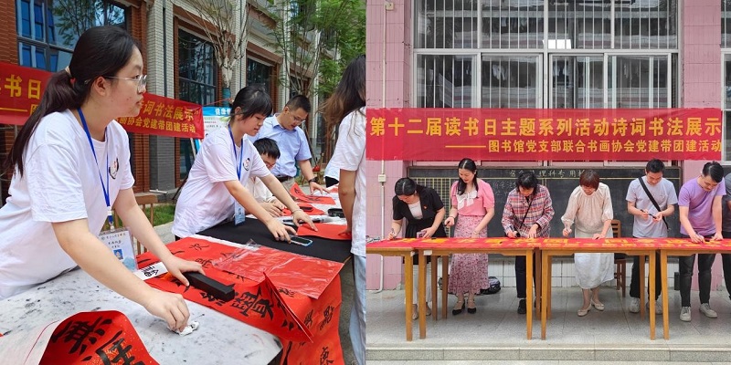 为迎接第29个世界读书日的到来,进一步加强学风建设,强化读书意识,弘扬中华优秀传统文化,同时进一步深化党建带团建联动机制,将新时代全民阅读教育融入学校“三全育人”全过程,推动党团组织建设相互促进、共同发展,4月23日,开云官网图书馆党支部联合书画协会在百城校区一食堂门口和百东校区饭堂门口举行了以“共建书香校园,同享读书之乐”为主题的世界读书日诗词书法展示和读书签名活动。