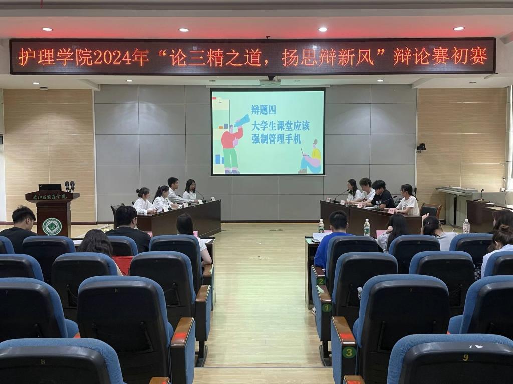 为深入学习领会习近平总书记关于青年工作的重要思想,同时推进护理学院“精心、精湛、精美”的护理文化建设,护理学院于4月20日4月27日分别百城校区5教学楼101学术报告厅护理学院211会议室和百东校区守正楼C207教室开展“才思争鸣,‘权’听你辩”主题辩论赛的初赛与决赛。