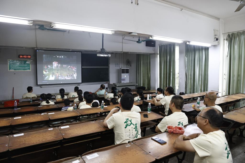 校友们观看记录着他们校园时代的视频