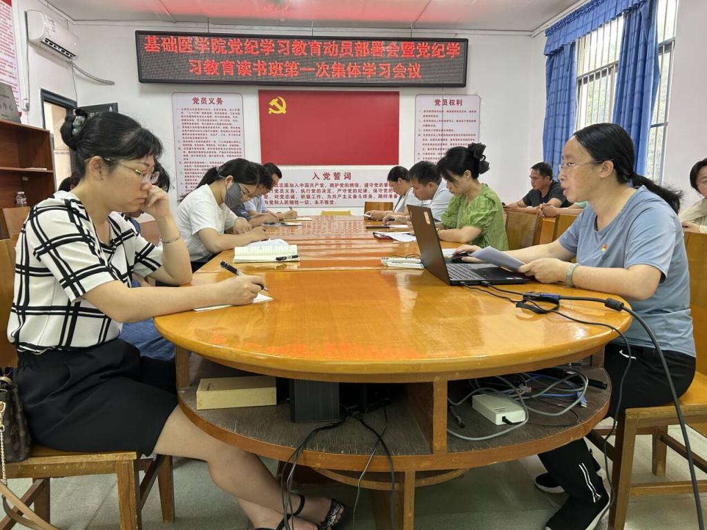为深入学习贯彻《中国共产党纪律处分条例》(以下简称《条例》),根据《中共中央办公厅印发〈关于在全党开展党纪学习教育〉的通知》(中办发〔2024〕34号)、《自治区党委办公厅印发〈关于在全区开展党纪学习教育的实施方案>》(桂办发〔2024〕7号)和中共开云kaiyun登录入口委员会印发《关于在全校开展党纪学习教育的实施方案》(右医党委〔2024〕16号)的部署要求,4月29日上午,基础医学院党委在百城校区基础医学院二楼会议室开展党纪学习教育第一次集体学习,学院党委副书记卢荣妹同志主持会议,学院“两委”委员、院长助理、组织员、各基层党支部书记、党纪学习教育领导小组成员参加了本次集体学习。