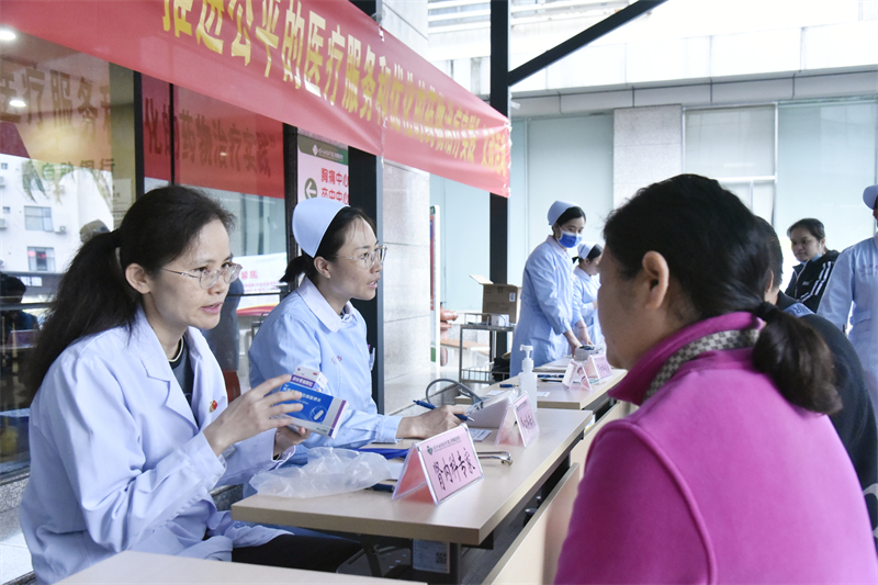 右医附院肾内科副主任医师黄美英在义诊现场为患者详细问诊、悉心解答