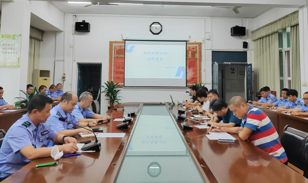 5月11日,保卫处在图书馆二楼会议室召开了校卫队工作例会,处长杨文沛、副处长黄海波出席会议,治安科、综合科、校卫队全体成员参加会议,治安科黄飞扬同志主持会议。