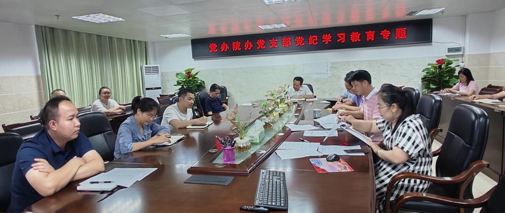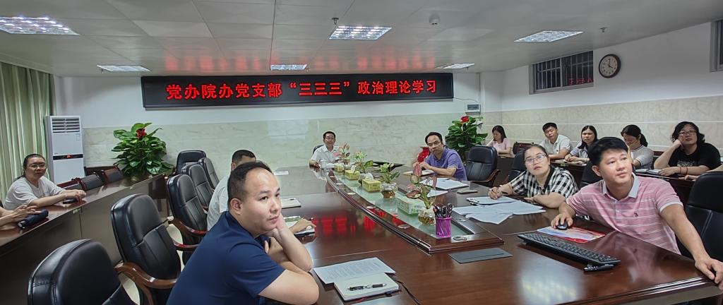 5月15日下午,党办院办党支部在百城校区7栋12楼第一会议室召开“三三三”政治理论学习,传达学习习近平总书记关于开展党纪学习教育的重要讲话和重要指示精神,贯彻落实党中央、自治区党委以及学校党委有关部署要求,通过个人自学与集中学习相结合的方式,原原本本、逐章逐条学习《中国共产党纪律处分条例》,切实做到学有所思、学有所获。