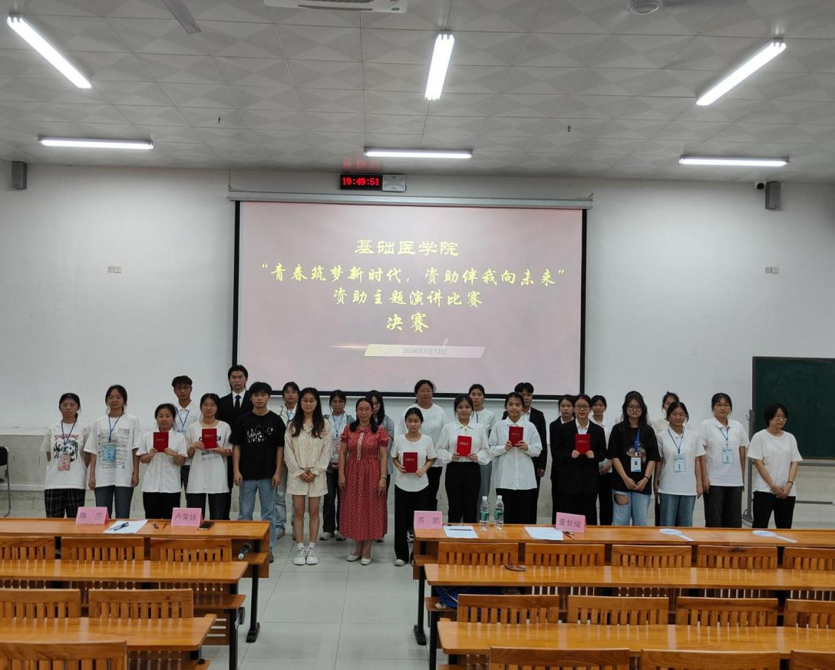 为充分发挥国家资助政策的育人功能,形成“资助—助学—感恩—回馈”的良性育人循环,5月13日下午,基础医学院在百东校区守正楼A107举办了以“青春筑梦新时代,资助伴我向未来”为主题的学生资助演讲比赛。