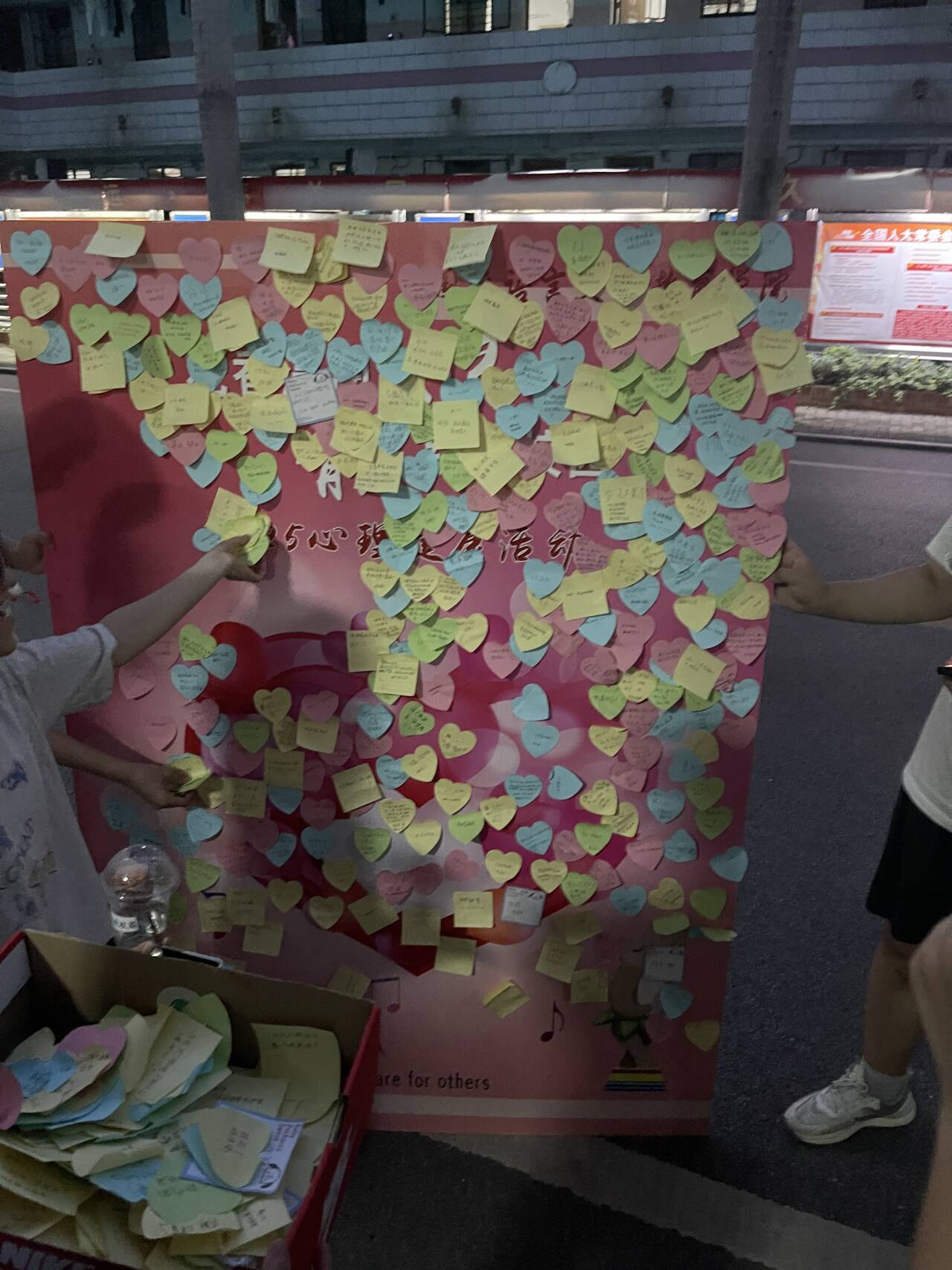 活动现场摆满鲜艳的玫瑰花,宛如心灵绿洲,温馨而热闹。现场精心设置了心灵百宝箱与心愿便利贴两个互动环节。在心灵百宝箱环节中,同学们可将烦恼写在便利贴上投入“情绪垃圾箱”以释放压力,或者写下快乐心情贴到开心分享展板上传递正能量。参加活动的同学可以领取玫瑰花。五彩斑斓的“心愿便利贴”成为情感交流与心灵沟通的桥梁,同学们积极参与,写下自己最真实美好的祝愿。领到鲜花的同学,拿出手机拍下快乐温馨的瞬间,传递“善待自己,关爱他人”的温暖。