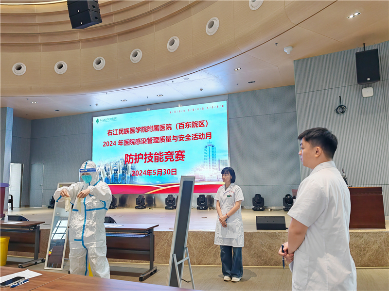 5月30日,右医附院在总院区外科五楼大教室、百东院区学术报告厅分别组织举办2024年医院感染管理质量与安全活动月防护技能竞赛。右医附院院长韦忠恒、副院长蓝常贡到比赛现场观摩指导,来自全院各临床、医技、后勤部门医护人员近200人参加比赛。