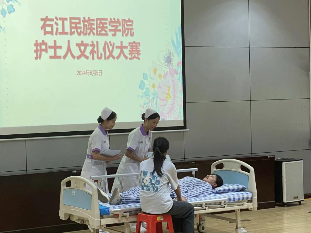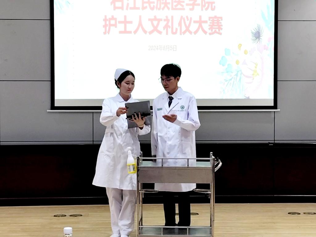 为全面贯彻党的二十大精神,进一步强调人文护理的重要性,彰显护理学院“精心、精湛、精美”的三精文化品牌,同时提高护理学生的人文素养与人文护理水平,6月5日下午,护理学院于百城校区5号教学楼101学术报告厅举办2024年“以礼修身,以仪正行”护理人文礼仪大赛。本次大赛邀请护理学院黄芳艳教授作为大赛总裁,由护理学院人文护理综合教研室主任刘西芳,临床医学院外联部、干部健康管理办公室主任陈晴,开云kaiyun登录入口附属医院护士长陆美娇,开云kaiyun登录入口附属西南医院护士长马黎黎以及护理学院学生科许萌杏担任此次大赛评委。