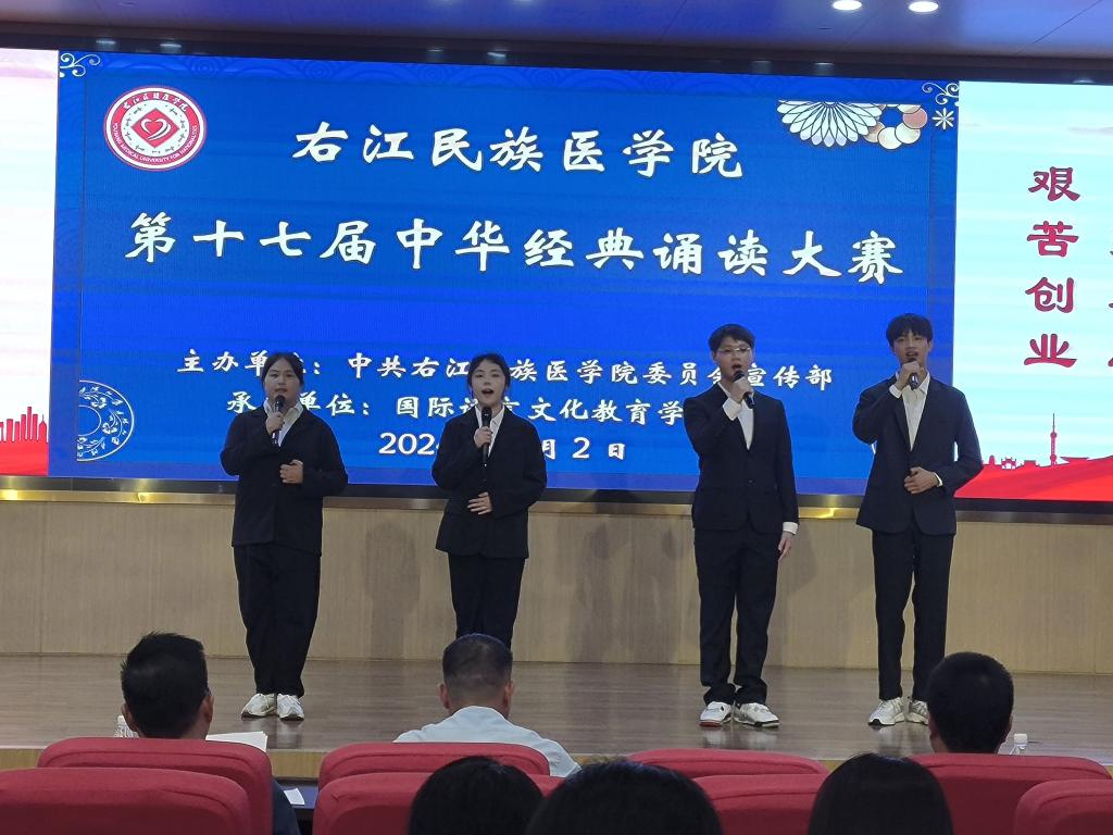 6月2日下午3:00,开云官网在国际会议中心二楼学术报告厅举办第十七届中华经典诵读大赛。唐春娥、杨凤兰、林菲、李欣湲组成公共卫生与管理学院教师代表队,2023级预防2班陆羽珊、2023级管本1班苏世玉、2023级管本2班林源、2023级预防2班罗海宽组成公共卫生与管理学院学生代表队。公共卫生与管理学院师生代表队均荣获大赛三等奖。