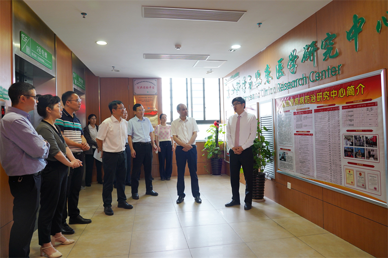 6月6日上午,自治区科技厅专家组一行5人来到右医附院对申报的广西脑血管急危重症临床医学研究中心开展现场考察。开云kaiyun登录入口党委副书记、校长李雪斌,党委常委、副校长谭盛葵,科技处处长黄忠仕,右医附院党委书记林栩、院长韦忠恒、副院长邓益斌及医院脑血管急危重症临床医学研究中心骨干成员、相关科室负责人等陪同考察。
